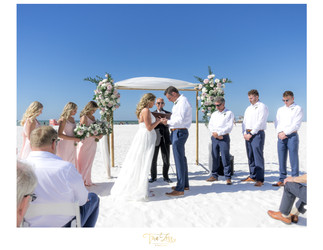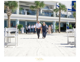 Sharrah looked gorgeous in her wedding gown as she was escorted across the sand by her son, to join Brian in front of their wedding arch that was beautifully adorned by Iza's Flowers. Then, in front of an intimate gathering of their family and friends, with an amazing view of the Gulf of Mexico as their backdrop, the couple shared their vows, exchanged rings and were pronounced husband and wife by Rev Rick Lackore of Sensational Ceremonies. Thank you to the staff of the Hilton and Event Coordinator Gianna from the Hilton Clearwater Beach.